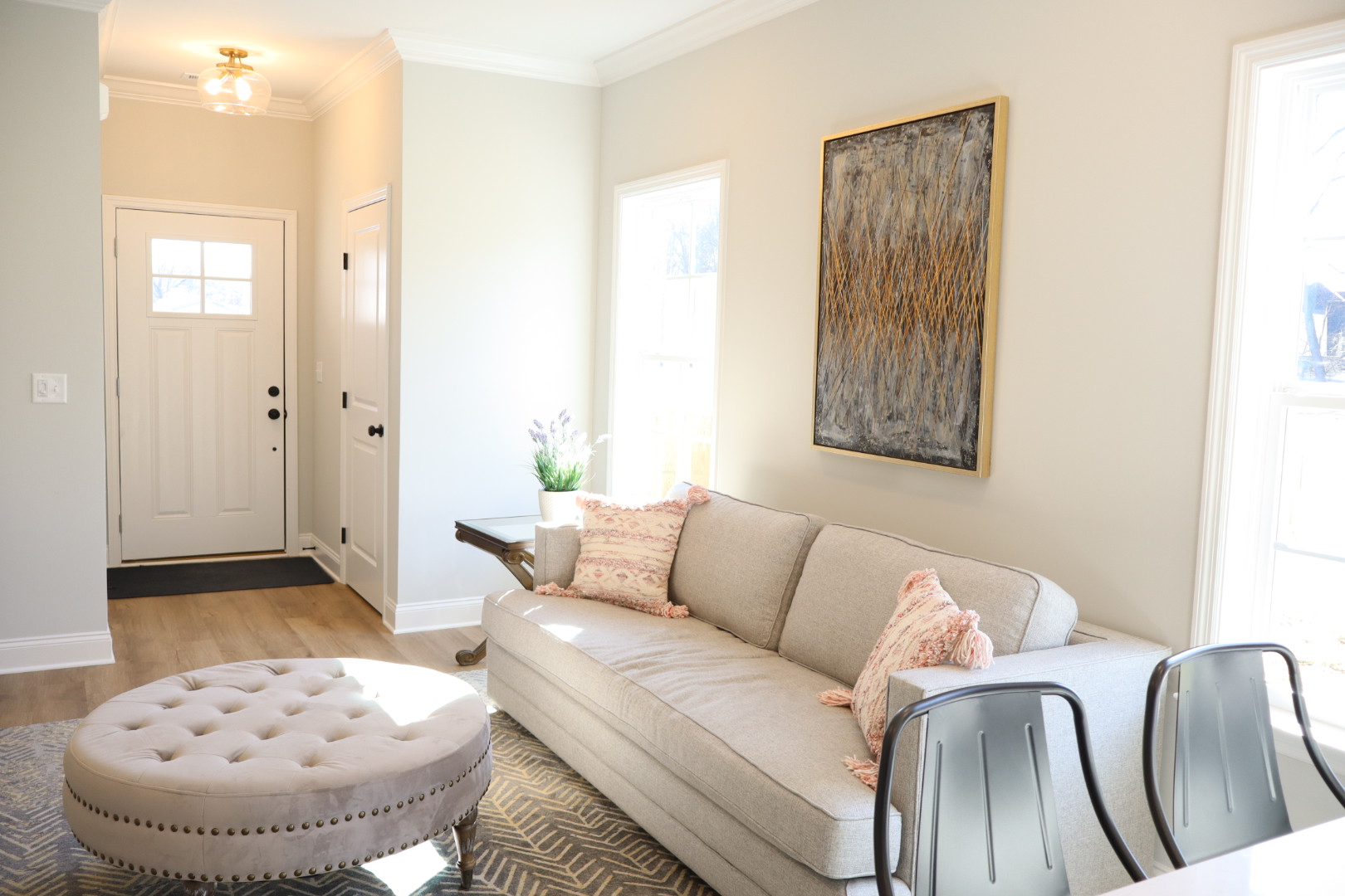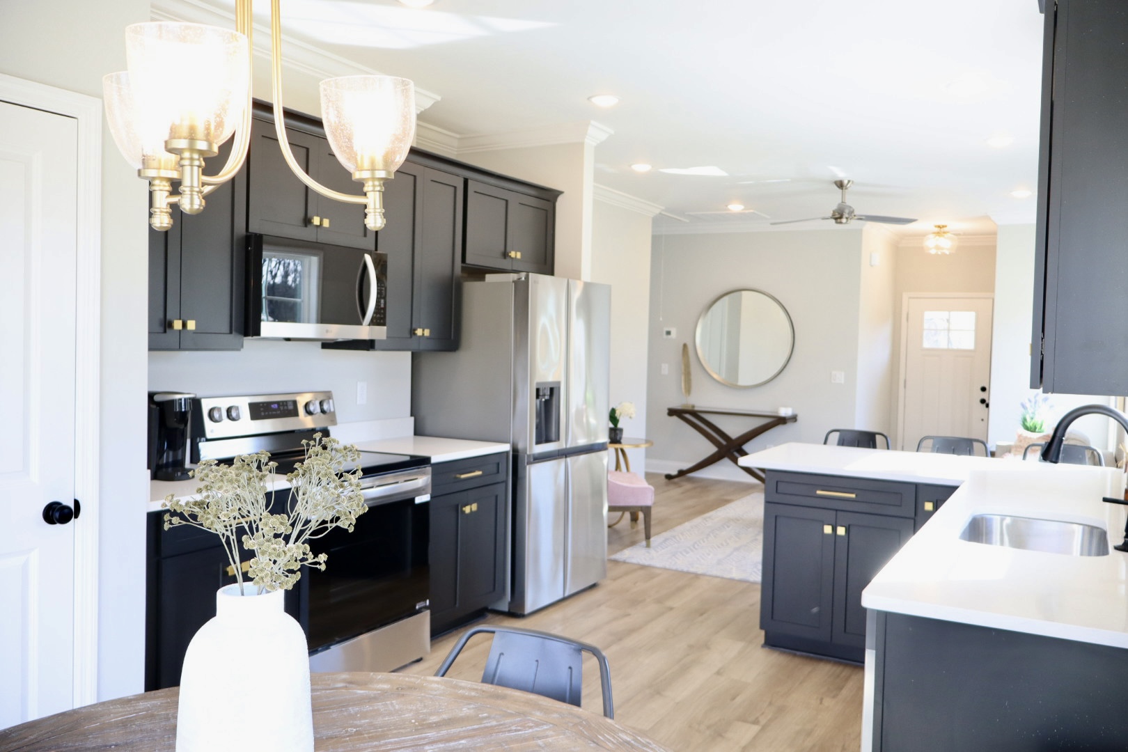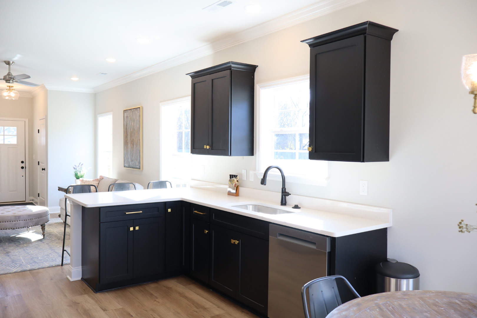 From the moment you step inside, the open layout creates a welcoming atmosphere, seamlessly connecting the living, dining, and kitchen areas with 9-foot ceilings that enhance the sense of space. Whether you’re hosting a small gathering or enjoying a quiet evening, this layout adapts effortlessly to your needs.